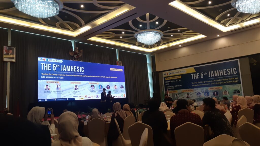 Acara yang diselenggarakan oleh Fakultas Kedokteran dan Ilmu Kesehatan Universitas Jambi ini menghadirkan pembicara-pembicara terkemuka dari berbagai disiplin ilmu kesehatan, serta para akademisi dan praktisi dari dalam dan luar negeri. Tema konferensi kali ini menyoroti pentingnya inovasi digital dalam kesehatan dan strategi Pendidikan Antarprofesi (IPE) yang dapat memperkuat kolaborasi antarprofesional dalam upaya meningkatkan kesehatan global.