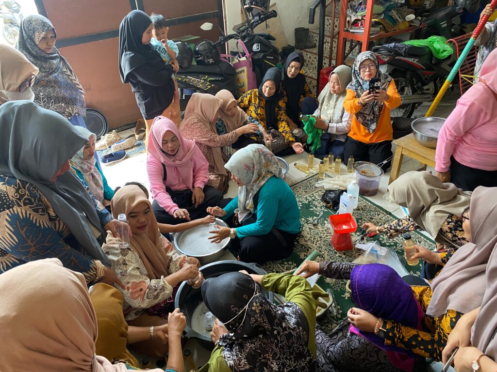 Setelah membuka acara, Prof. Amirul juga mengunjungi TPS3R Dayung Habibah, tempat pengolahan sampah yang dikelola oleh masyarakat. Ia mengapresiasi inisiatif pengolahan sampah di sini dan berkomitmen untuk terus mendorong kegiatan serupa di masa depan. Ketua Yayasan Dayung Habibah, Leni Haini, juga menyambut baik pelatihan ini. “Warga sekarang lebih sadar kalau limbah dapur bisa diubah menjadi produk bermanfaat. Ini penting untuk lingkungan dan bisa menambah penghasilan,” ujarnya. Antusiasme peserta sangat tinggi. Mereka langsung mencoba mencampur bahan-bahan eco enzyme dan berdiskusi tentang takaran, aroma, hingga ide kemasan.
